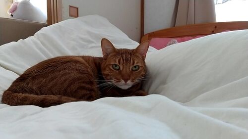 今日は母が3泊4日のショートスティから帰ってきました。 母不在の間、母のベッドで自由に寛いでいたハナさん。 母が帰宅しましたので、ハナさん、そこは上ってはいけませんよ。 場所をあけてください。 「アタチ、疲れてるのよ。毎日聖歌隊の練習で…♬」 そ…