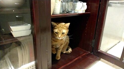ハナさんに食器棚の中に入られてしまいました。 ここのところ、ちょっと入っていませんでした。 やられましたね。 ハナさんが食器棚に入り込むやいなや、即行でその棚の食器を全出しする下僕でございます。 狭い食器棚。 そこがまたいいのでしょう。 猫さん…