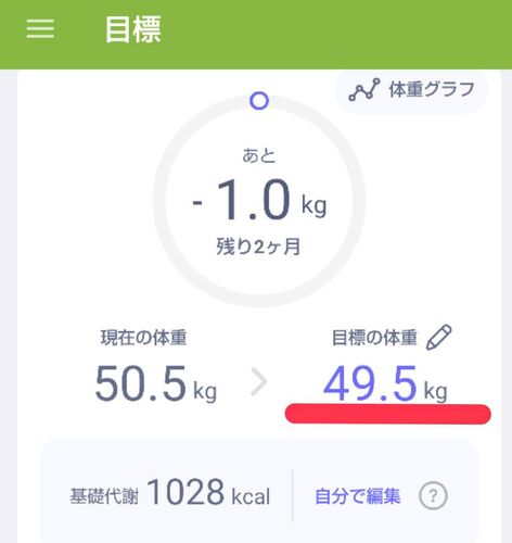 アプリ「あすけん」を利用してダイエットをするようになってから2か月。 当初の目標は「北海道にいた頃の体重に戻すこと」でしたから、目標体重を50.5㎏に設定しました。 その目標は先日達成しました。 その後、体重を落とすことより、筋力アップなどに…