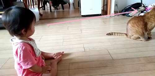 猫の毛が気になって、まご子ちゃん(1歳2か月)が我が家にいる時はハナさんを部屋に入れないようにしています。 でもまご子ちゃんはハナさんのことが大好きです。 まご子ちゃんに見つめられて逃げるハナさん 「面倒くさい奴…」 まご子ちゃんが来るとペース…