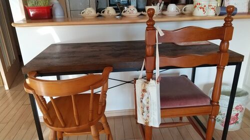 長女の旦那様が、仕事用のデスクを新しくしました。 なので、古いデスクが我が家に回ってきました(◎_◎;) とりあえず空いている場所に置こうと思い、キッチンカウンターの前に置いてみたのです。 このデスクの高さがお子様用椅子に腰かけた時に、まご子ちゃん…