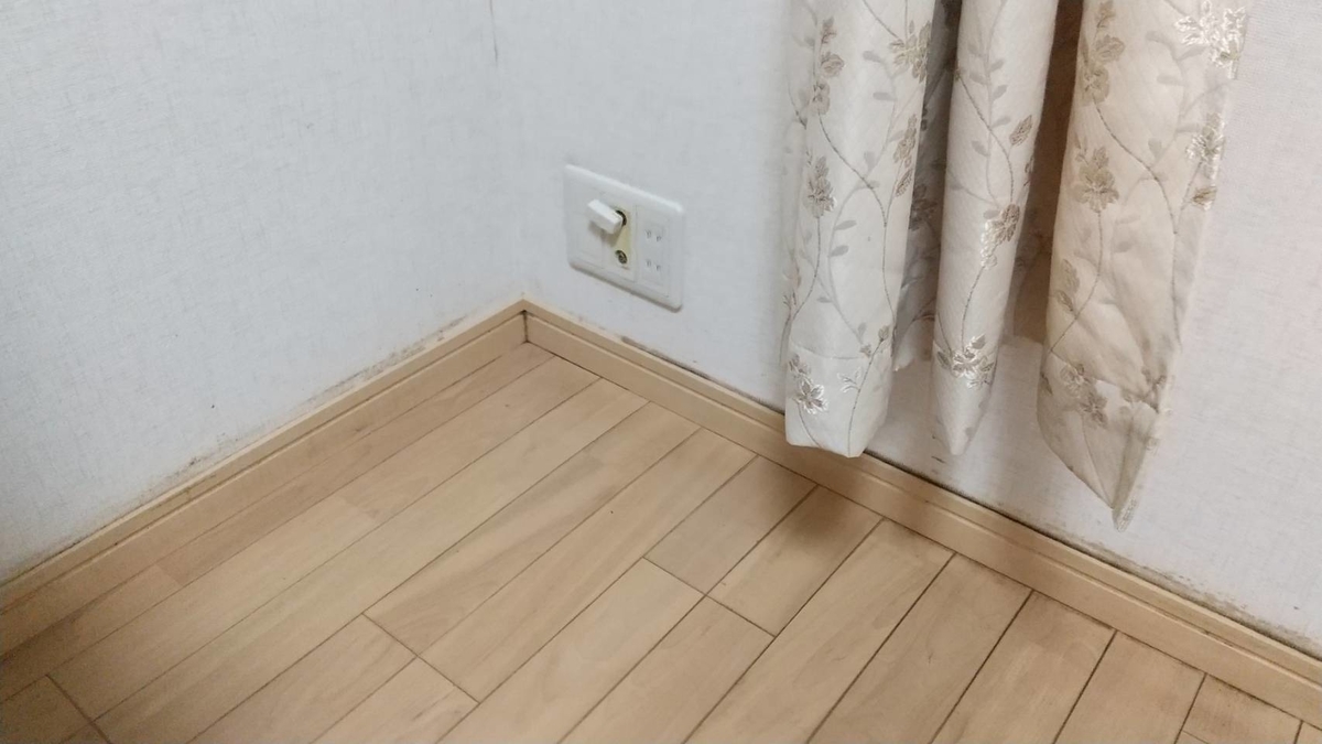 今まで家具を置いていた箇所に真っ黒な黒カビが発生しています。