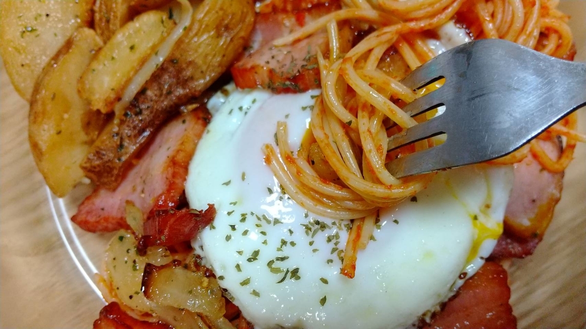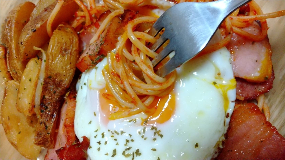 2023-01-26 ナポリタンには半熟目玉焼き ごはん にほんブログ村 長女が作っておいてくれたナポリタンが冷蔵庫にあったので。 それをチンして、上に目玉焼きをのせる。 私はキムチ炒飯にもナポリタンにも目玉焼きをのせる。 www.betty0918.biz そして、その目玉焼きは半熟がいい。 半熟の黄身に麺を絡ませながら食する。 熱々の麺に絡まる黄身ソース。 ジャーマンポテト(市販品)まで添えちゃって、カロリー過多だな(笑) にほんブログ村 グルテンフリーを意識した食生活を考えていこうかなと思っていたところなのに、おもいきりパスタでした(笑) リンク リンク