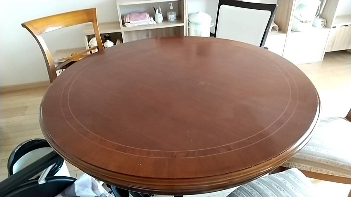 このテーブルは、四半世紀以上昔、北海道に住んでいた頃マンションのモデルルームで使用されていた物で、オークションで落札しました。