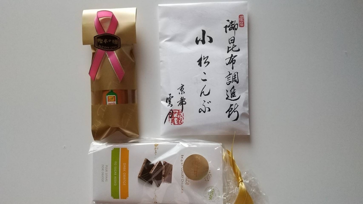 チョコレートに、洋酒入りのお菓子、そして塩昆布。