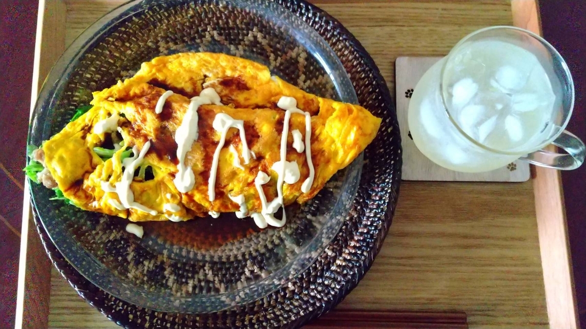 オムライスより包むのが難しくて、ちょっと形が崩れました。