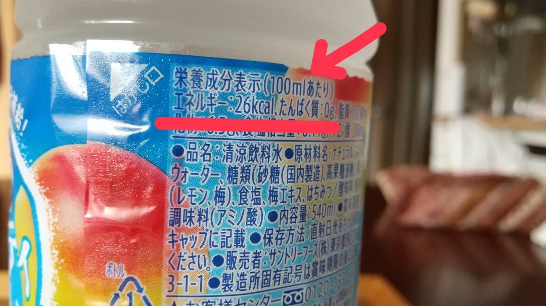 で、よくよく読んでみるとカロリーは「100㎖ 26kcal」でした。