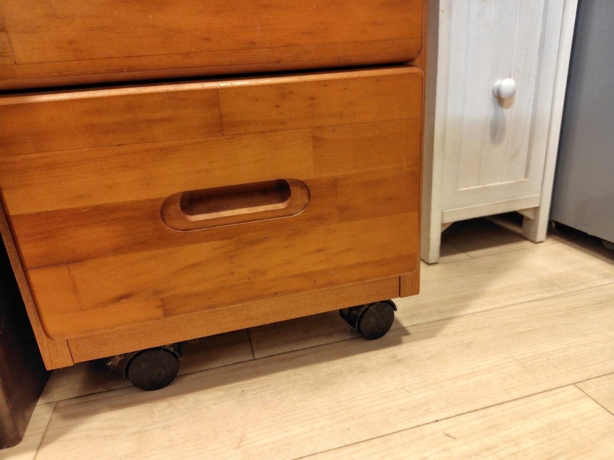 以前はこのキャスター付きチェストには母の下着や靴下などを収納していましたが、今はキッチンに置き、ティ―バッグやインスタントスープなどのストックを入れています。